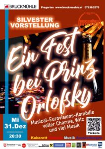 „Ein Fest bei Prinz Orlofsky“ „Ein Fest bei Prinz Orlofsky“ am 31.12.2025 und am 31.1. 2026 in der Bruckmühle in